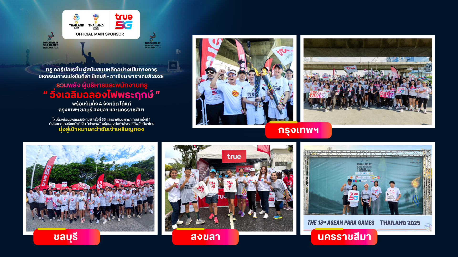 Bangkok 16 November 2568 – True Corporation and Charoen Pokphand Group, the official main sponsors of the 33rd SEA Games and 13th ASEAN Para Games, are rallying the unity of the Thai people through the “Torch Relay Celebration Run” a prelude to the 33rd SEA Games and 13th ASEAN Para Games, for which Thailand is the proud host. The initiative aims to pass on encouragement to the Thai contingent as they strive to become SEA Games gold medal champions on home soil.