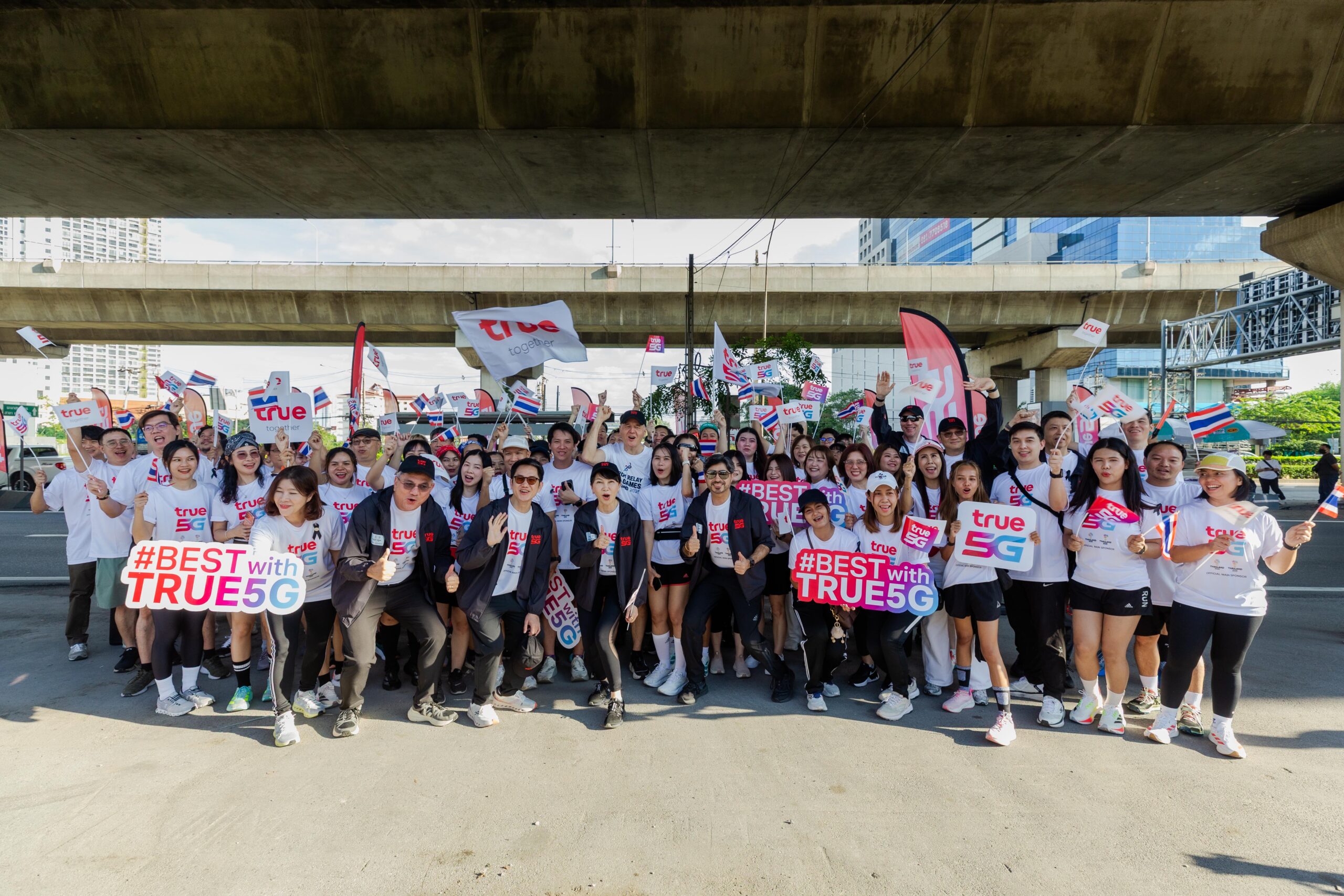 This major event was held simultaneously across four provinces Bangkok, Chonburi, Songkhla and Nakhon Ratchasima with the main highlight taking place at the forecourt of Indoor Stadium Huamark. Leading the ceremony were senior executives from True Corporation Public Company Limited, headed by Mr. Sigve Brekke, Executive Chairman of Telecommunications and Digital Business Group of Charoen Pokphand Group Co., Ltd., and Group CEO of True Corporation Plc., together with executives from CP Group companies, led by Dr. Teerapon Tanomsakyut, Chief Sustainability & Strategy Officer of Charoen Pokphand Group. They were joined by Atthakorn Sirilatthayakorn, Minister of Tourism and Sports; Chadchart Sittipunt, Governor of Bangkok; Dr. Kongsak Yodmanee, Governor of the Sports Authority of Thailand (SAT) along with senior executives and athletes who attended in great numbers.