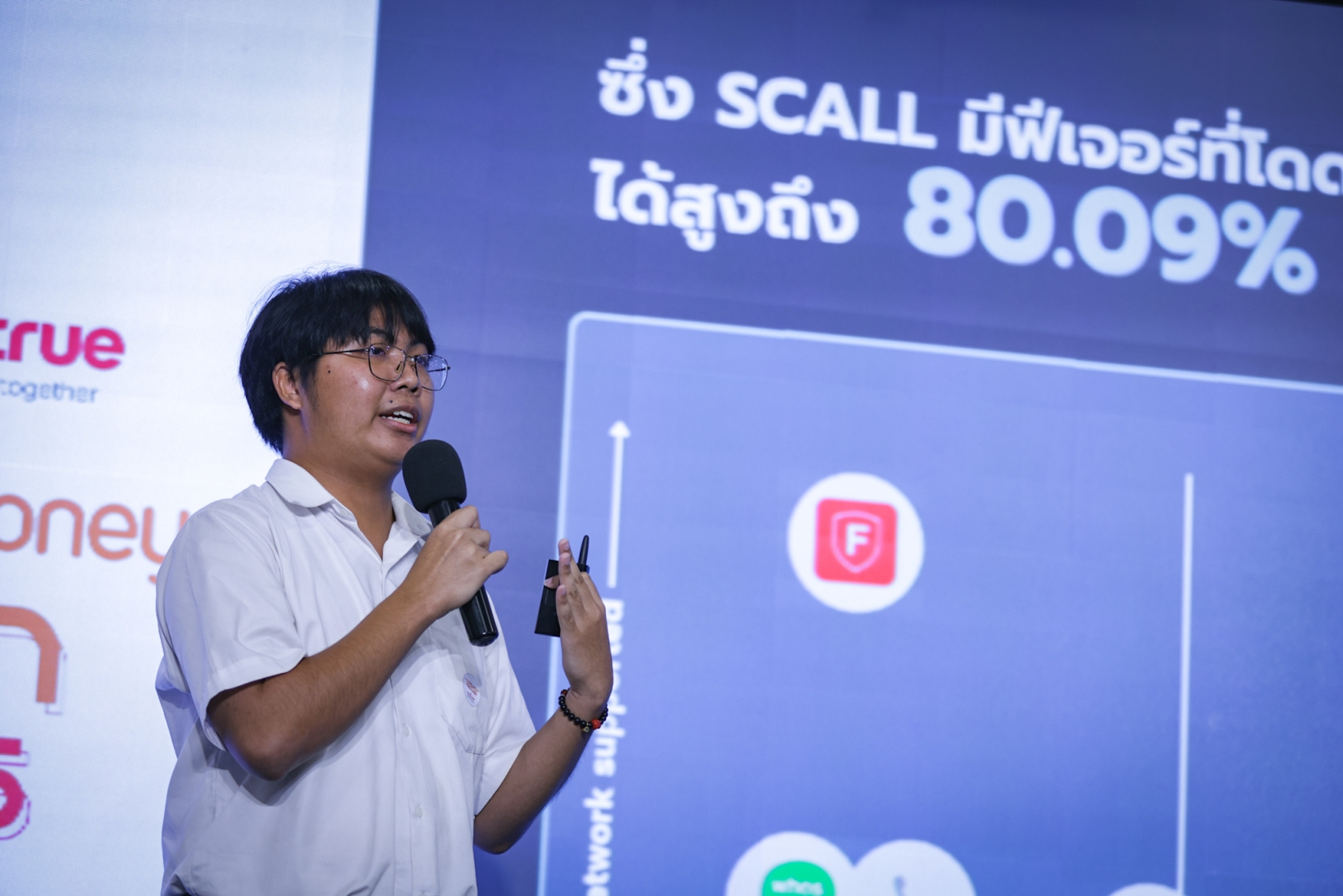 Team Phraewa No.1 – Their innovation, SCALL, is a mobile application that detects and alerts users in real time when a phone conversation shows signs of potential fraud. The system analyzes speech patterns and conversational behaviors with precision, notifying users immediately upon detecting suspicious activity, helping prevent losses before they occur. Designed for simplicity and accessibility, SCALL works across all mobile networks and is built with strict privacy protection as a core principle. Its ease of use makes it suitable for people of all ages, from seniors and working adults to younger users. With its ability to detect scam calls instantly, SCALL is set to become a vital solution in enhancing everyday digital safety for Thais. The team aims to help reduce the number of scam victims by more than 2,500 people within the first year.