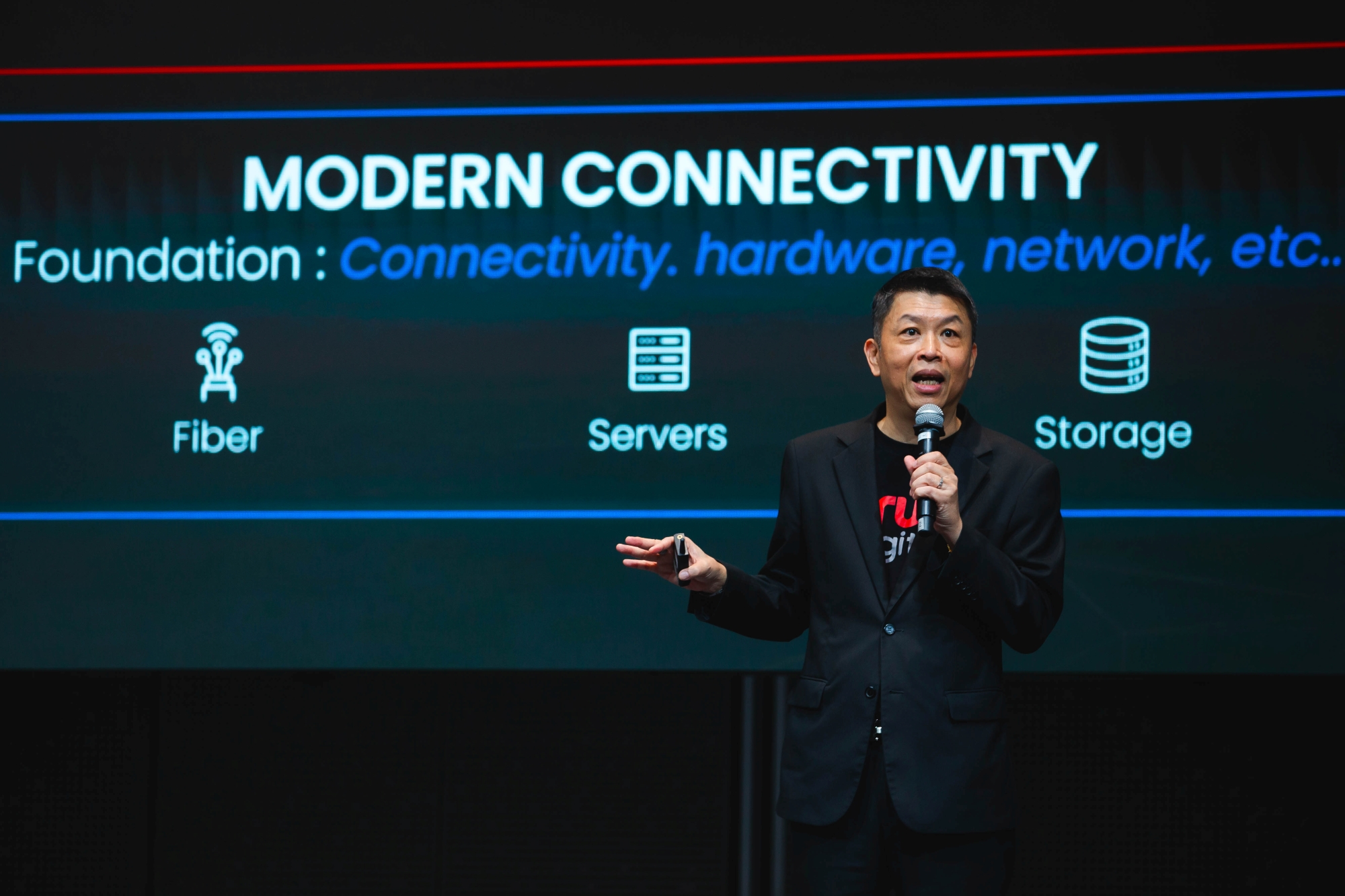 นายเอกราช ชี้ชัดว่า องค์กรต้องยกระดับโครงสร้างพื้นฐานยุคใหม่ ประกอบด้วย 3 ระดับ โดยมีพื้นฐานเป็นโครงข่ายการเชื่อมต่อ (Connectivity) ที่ต้องมีความอัจฉริยะ ปลอดภัย สามารถบริหารลำดับความสำคัญของการใช้งานได้ และเสริมด้วย Digital Intelligence Fabric ที่เชื่อมโยงและประยุกต์ใช้ได้กับทุกองค์กร รวมถึงระดับบนสุดคือ On-demand Applications เช่น ERP และ CRM ที่องค์กรสามารถเลือกใช้งานได้ตามความต้องการ