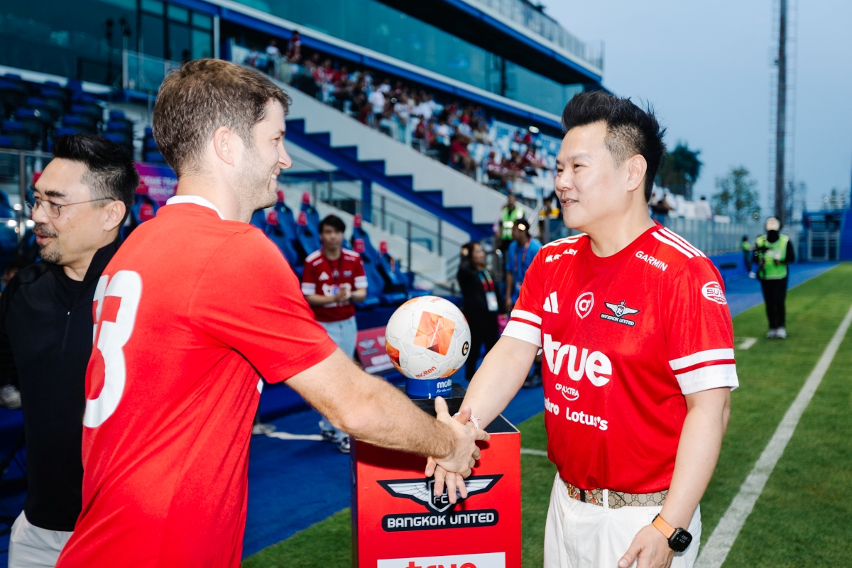 ปทุมธานี 23 กุมภาพันธ์ 2569 – เกมใหญ่ที่แฟนบอลรอคอยกลับมาทำสนามลุกเป็นไฟอีกครั้ง เมื่อ ทรู แบงค็อก ยูไนเต็ด เปิดบ้านทรู บีจี สเตเดียม รับการมาเยือนของ เมืองทอง ยูไนเต็ด ในศึกไทยลีก 2025/26 ท่ามกลางบรรยากาศเชียร์สุดเดือดแบบ “แน่นทุกโซน” โดย ทรู คอร์ปอเรชั่น เดินหน้าสนับสนุนฟุตบอลไทยอย่างต่อเนื่อง ร่วมส่งแรงใจข้างสนาม นำโดย นายขจร เจียรวนนท์ ประธานสโมสรทรู แบงค็อก ยูไนเต็ด พร้อมด้วย บมจ.ทรู คอร์ปอเรชั่น โดย นายโอลิเวอร์ กิตติพงษ์ วีระเตชะ หัวหน้าคณะผู้บริหารด้านแบรนด์และมีเดีย ร่วมส่งพลังไปกับแฟนบอลที่พร้อมใจกันเชียร์สุดเสียงตั้งแต่นกหวีดแรก ทำให้บรรยากาศในสนามคึกคัก และสมศักดิ์ศรี “บิ๊กแมตช์ของจริง” พร้อมกันนี้ ทรูยังอัพสัญญาณ ทรู5G ให้ครอบคลุมทุกโซนของทรู บีจี สเตเดียม รองรับการใช้งานของแฟนบอลอย่างเต็มประสิทธิภาพ ทั้งการไลฟ์ แชร์โมเมนต์ และอัปโหลดความมันแบบเรียลไทม์ ด้วยสัญญาณแรงเร็ว เสถียรตลอดการแข่งขัน