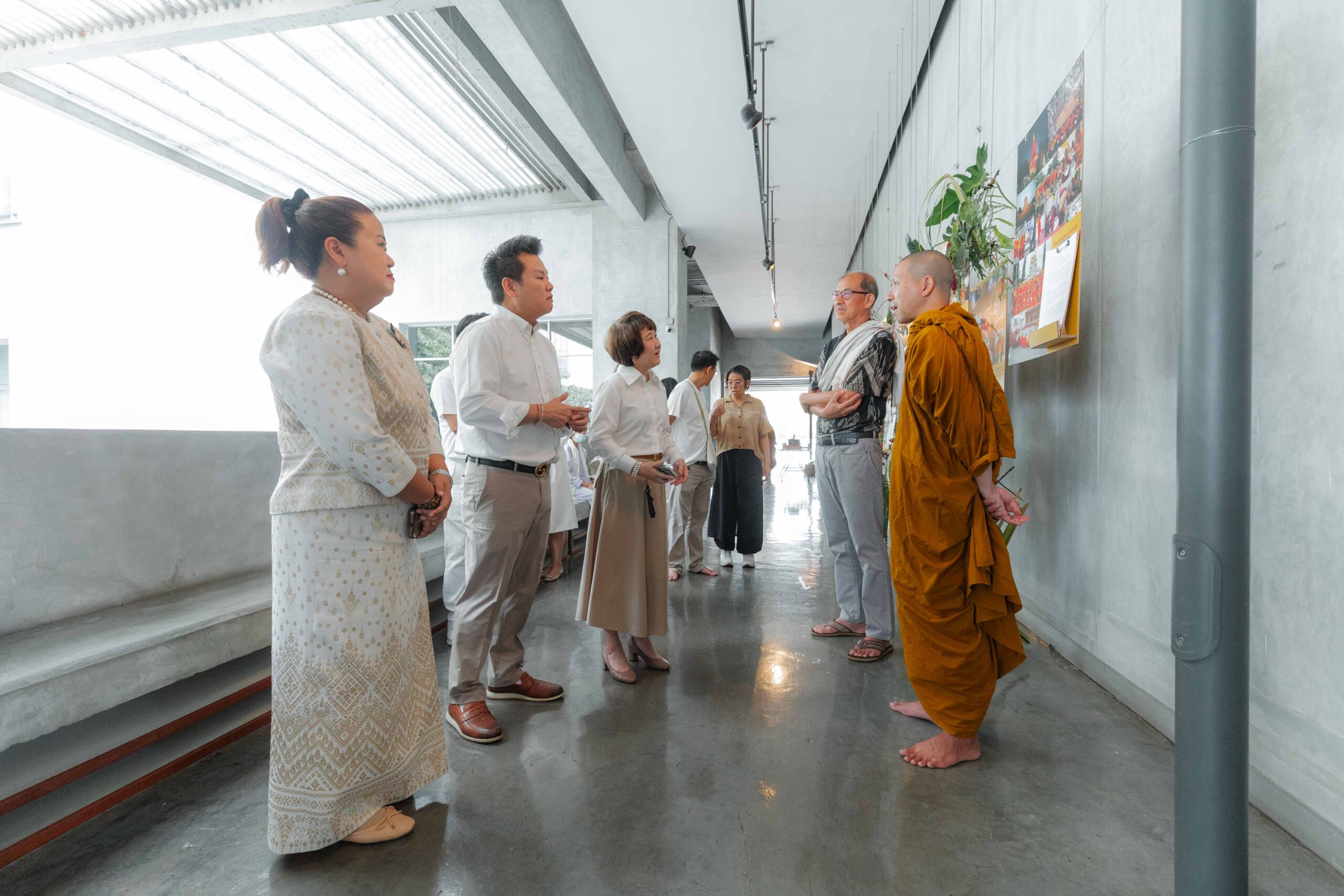 จากภาพซ้ายไปขวา : คุณเขมณัฏฐ์ วชิรรัตนวงศ์ หัวหน้าสายงานโมบายล์ ดีไวซ์ คอนเวอร์เจนซ์และความยั่งยืน บมจ. ทรู คอร์ปอเรชั่น คุณกรุณพล พานิช ผู้จัดการทั่วไป หอจดหมายเหตุพุทธทาส อินทปัญโญ คุณโอลิเวอร์ กิตติพงษ์ วีระเตชะ หัวหน้าคณะผู้บริหารด้านแบรนด์ และการสื่อสาร บมจ. ทรู คอร์ปอเรชั่น น.พ. บัญชา พงษ์พานิช ผู้อำนวยการ หอจดหมายเหตุพุทธทาส อินทปัญโญ คุณศรินทร์รา วงศ์ศุภลักษณ์ หัวหน้าคณะผู้บริหารด้านทรัพยากรบุคคล บมจ. ทรู คอร์ปอเรชั่น คุณกรอบแก้ว ปัญญารชุน กรรมการบริหาร หอจดหมายเหตุพุทธทาส อินทปัญโญ