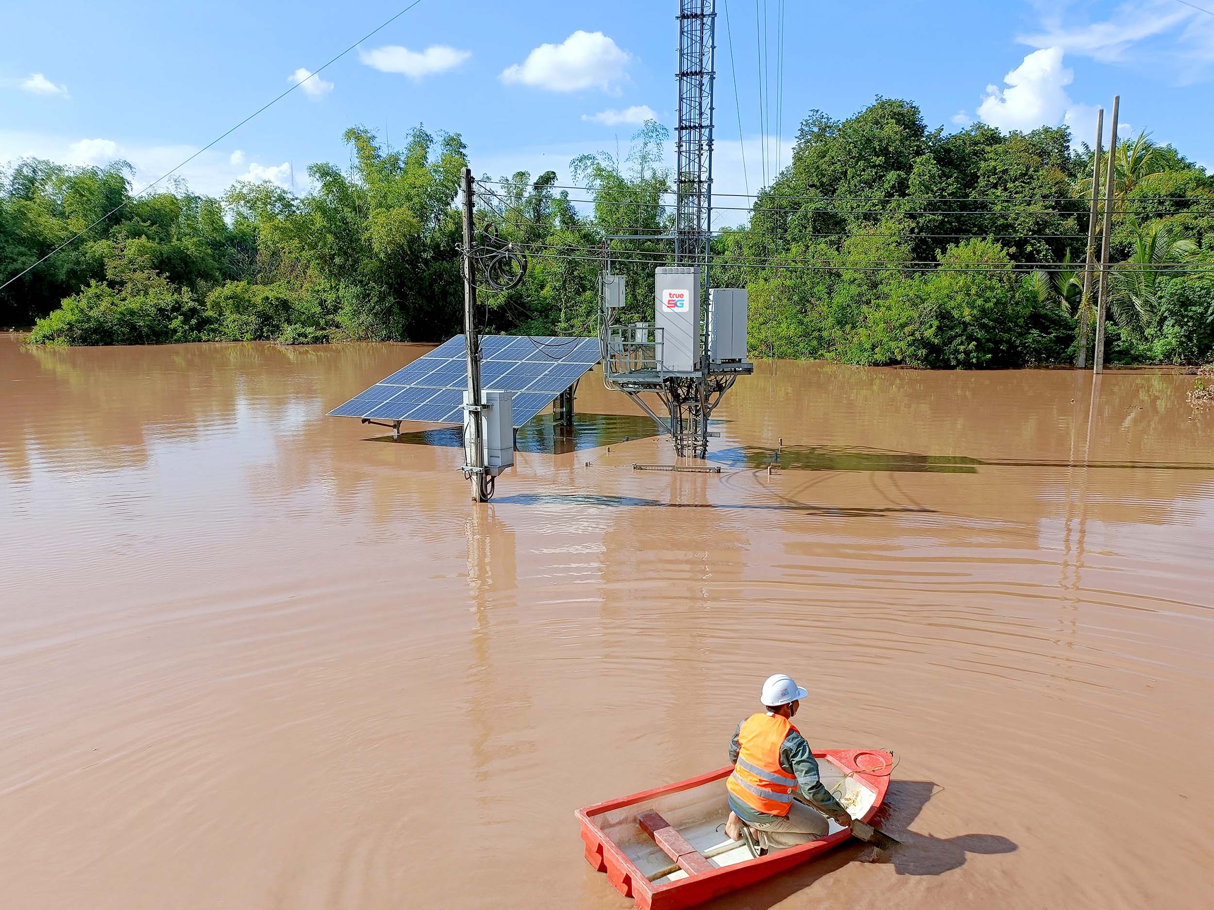 ทีมงานเน็ตเวิร์กของทรู คอร์ปอเรชั่น ได้ปฏิบัติการลงพื้นที่น้ำท่วมต่อเนื่องเพื่อดูแลคุณภาพของสัญญาณ 5G/4G แม้อยู่ในสถานการณ์ภัยพิบัติ เพื่อดูแลการสื่อสารและอุปกรณ์สถานีฐาน โดยได้ดำเนินการดังนี้