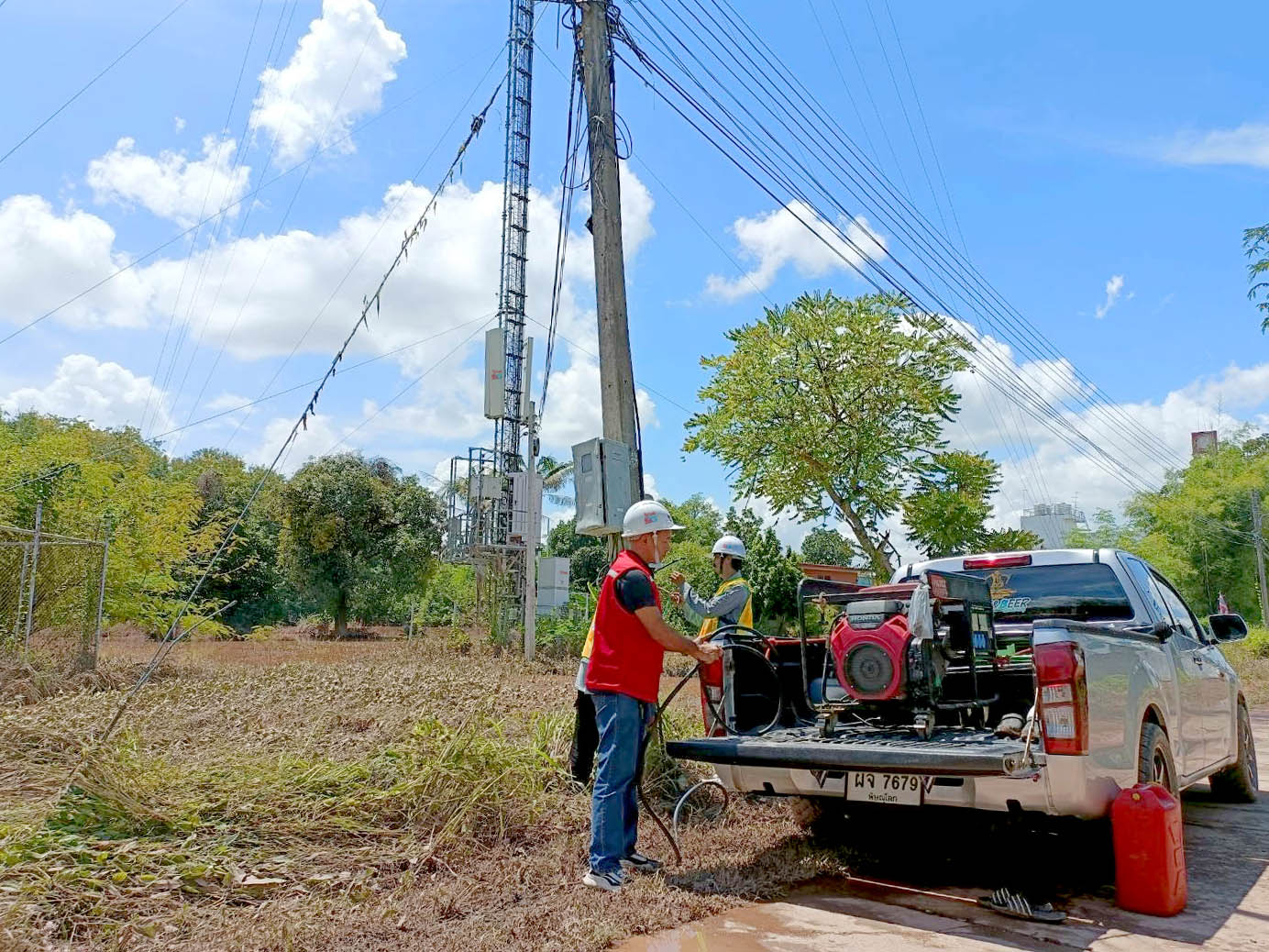- บริหารและสำรองพลังงานฉุกเฉิน – นำเครื่องปั่นไฟ น้ำมันสำรอง และแบตเตอรี่ เข้าประจำการในพื้นที่สถานีฐานที่ถูกตัดหรือเสี่ยงต่อการถูกตัดกระแสไฟฟ้าจากสถานการณ์น้ำท่วม เพื่อให้มั่นใจว่ายังคงบริการได้ต่อเนื่อง กรณีถูกตัดไฟฟ้าเพื่อความปลอดภัยจากน้ำท่วม