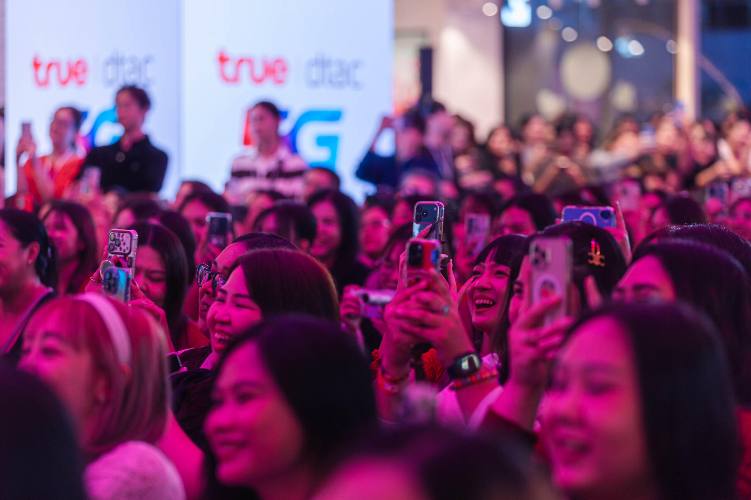 ภาพบรรยากาศแห่งความประทับใจ: ที่สุดแห่งมหกรรมความฟินแห่งปี! เมื่อสัญญาณใจเชื่อมถึงกัน บรรยากาศภายในงานเต็มไปด้วยพลังแห่งความสุข ทันทีที่ 4 หนุ่มปรากฏตัว เสียงกรี๊ดต้อนรับดังสนั่นตลอดงาน แฟนคลับผู้โชคดีซึ่งเป็นลูกค้าทรูและดีแทค ต่างได้สัมผัสประสบการณ์ที่หาซื้อไม่ได้จากที่ไหน ทั้งการพูดคุยอย่างเป็นกันเอง เกมสุดฟิน และโชว์พิเศษที่ทำเอาแฟนๆ “ใจละลาย” ฟินกันถ้วนหน้า สะท้อนภาพความสำเร็จของการเป็นแบรนด์ที่เข้าใจไลฟ์สไตล์ลูกค้าอย่างแท้จริง มอบความบันเทิงและสิทธิพิเศษที่คัดสรรมาอย่างดีที่สุด